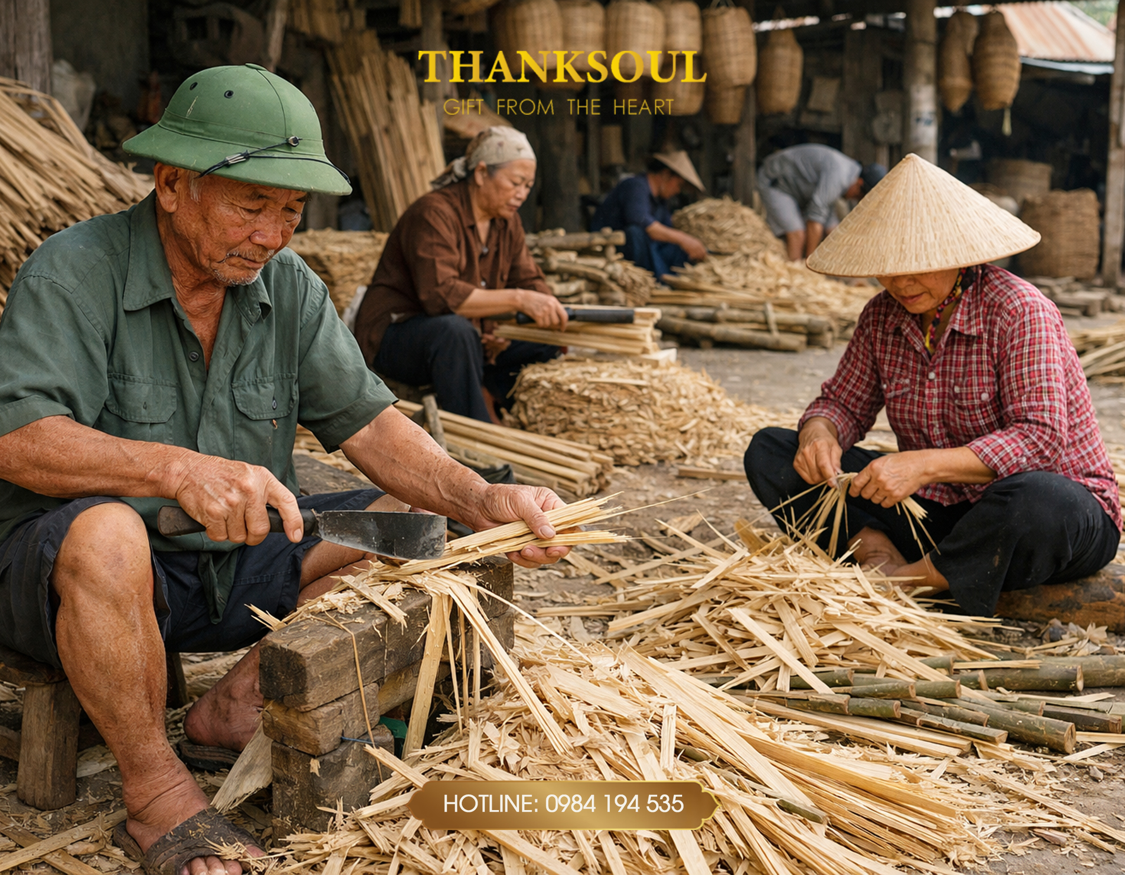Tuy nhiên, để tạo nên một chiếc giỏ mây tre hoàn chỉnh là cả một quá trình tỉ mỉ và công phu. Đằng sau mỗi sản phẩm là sự kiên nhẫn, khéo léo và kinh nghiệm lâu năm của những người thợ làng nghề. Hành trình tạo nên chiếc giỏ mây tre không chỉ đơn thuần là quá trình sản xuất mà còn là sự kết tinh của nghệ thuật thủ công truyền thống.