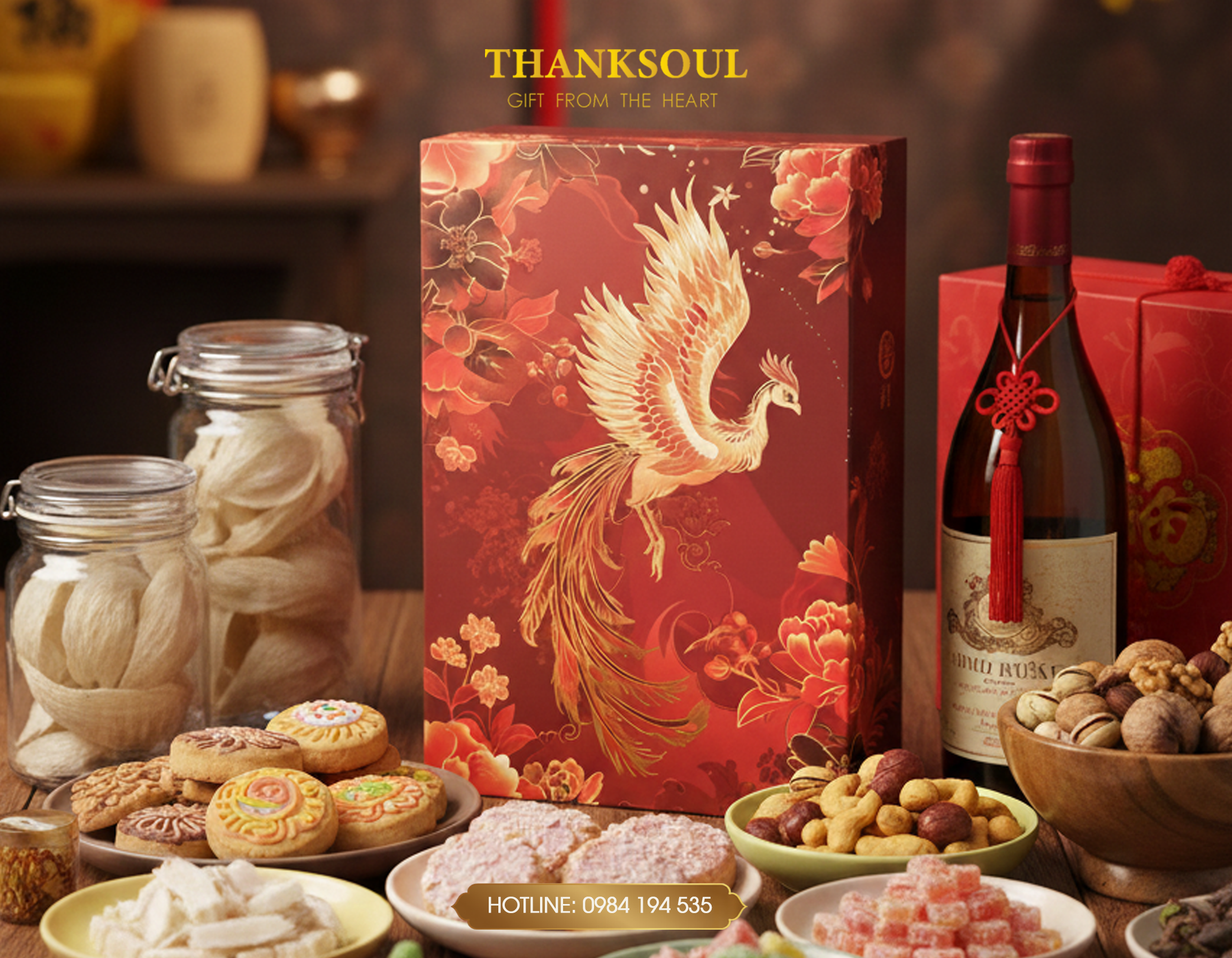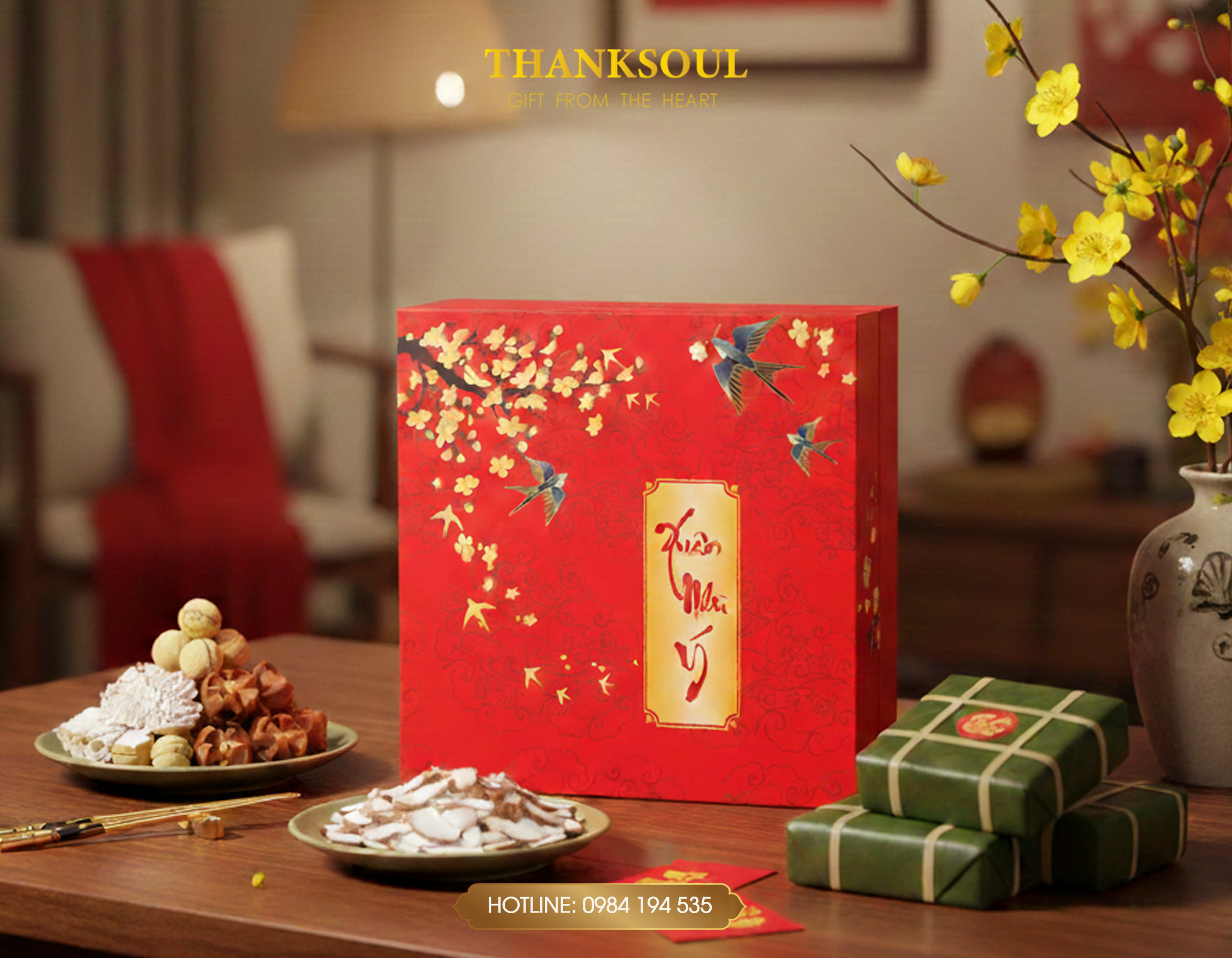 Tại THANKSOUL luôn đáp ứng được yêu cầu của khách hàng và luôn có giá tốt cho khách hàng đặt nhiều. Trên hinh là bộ hộp KIM PHƯỢNG NGHÊNH XUÂN 1, bán rất chạy tại THANKSOUL